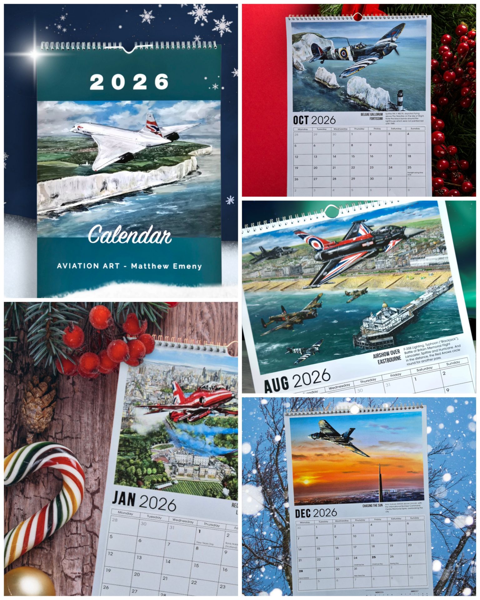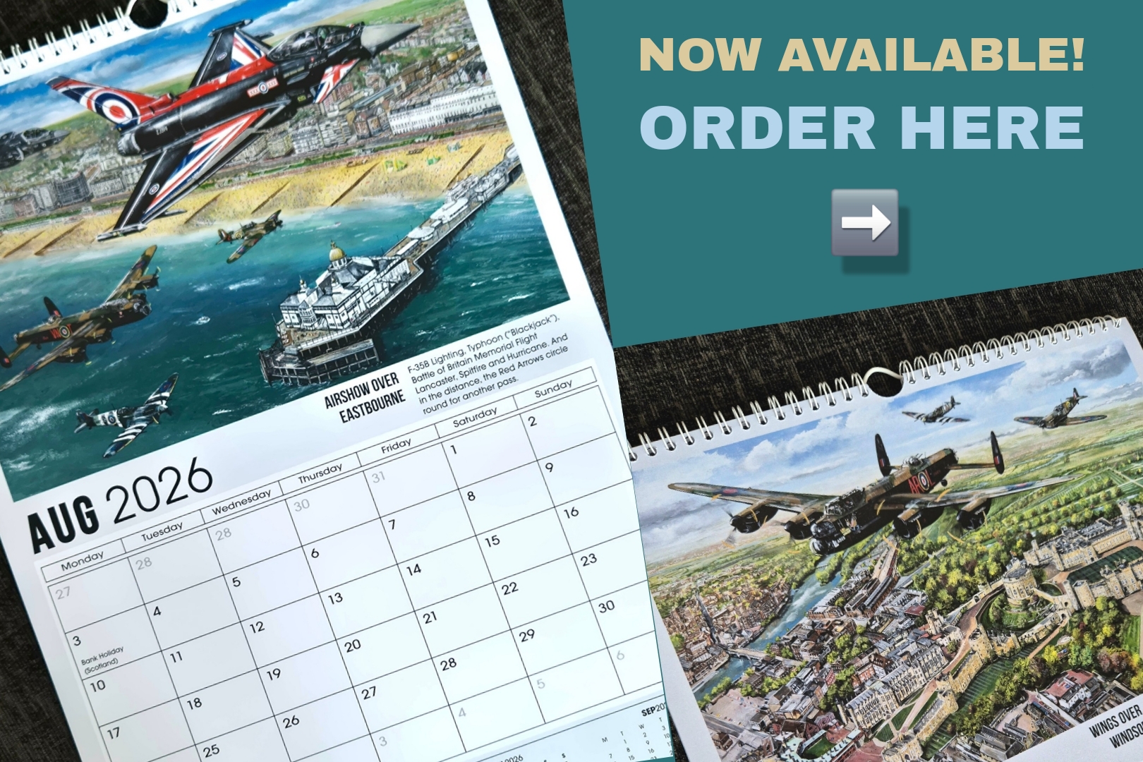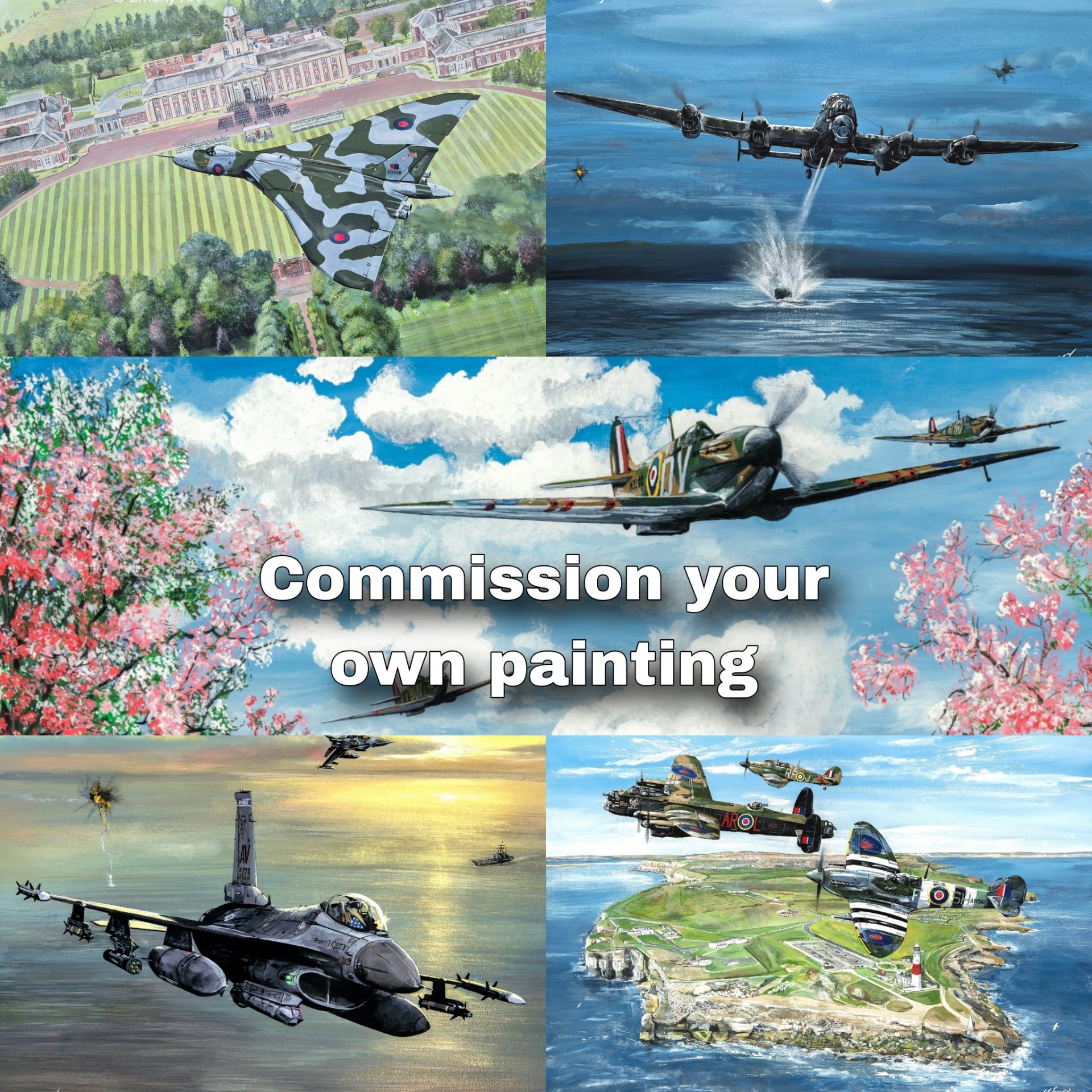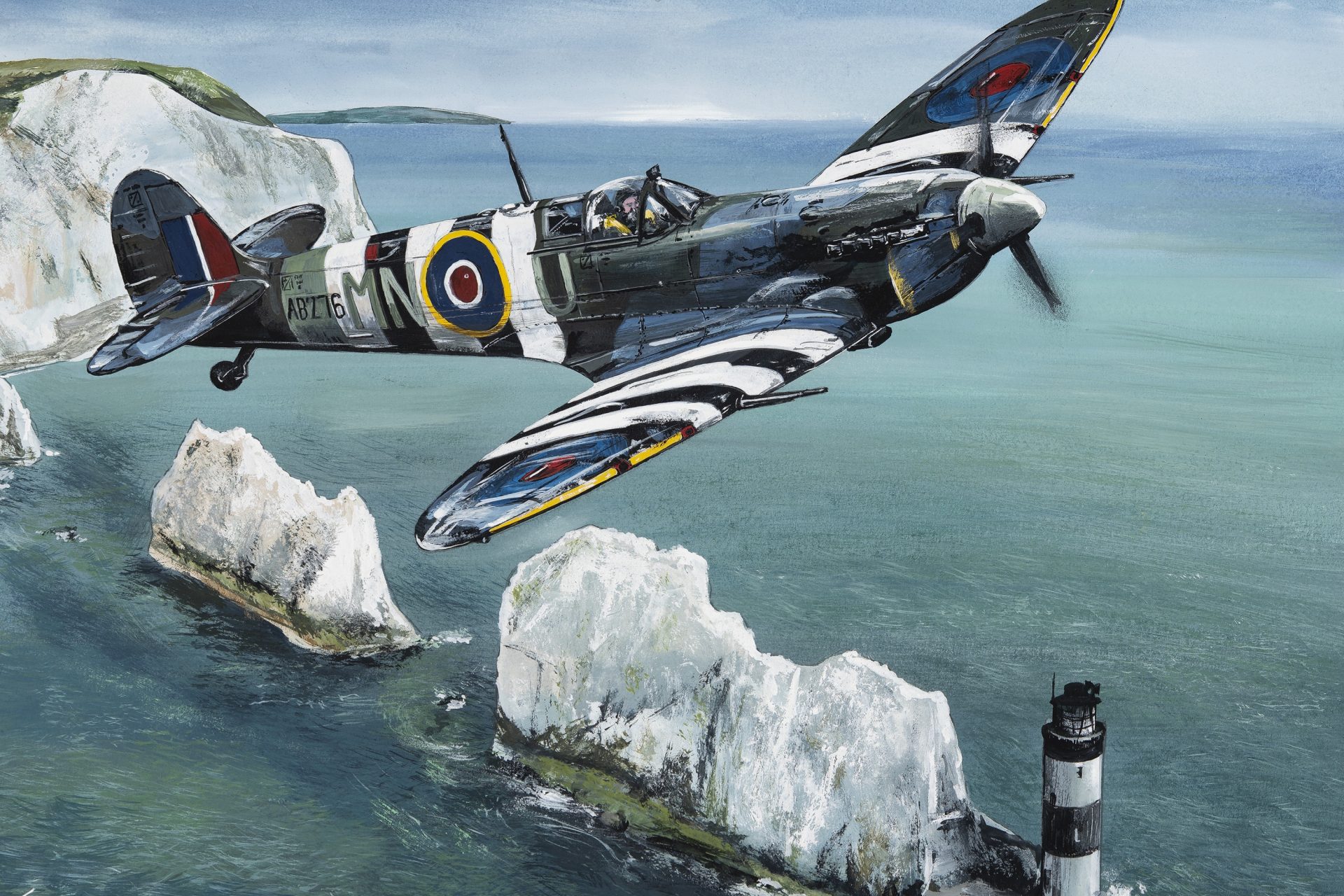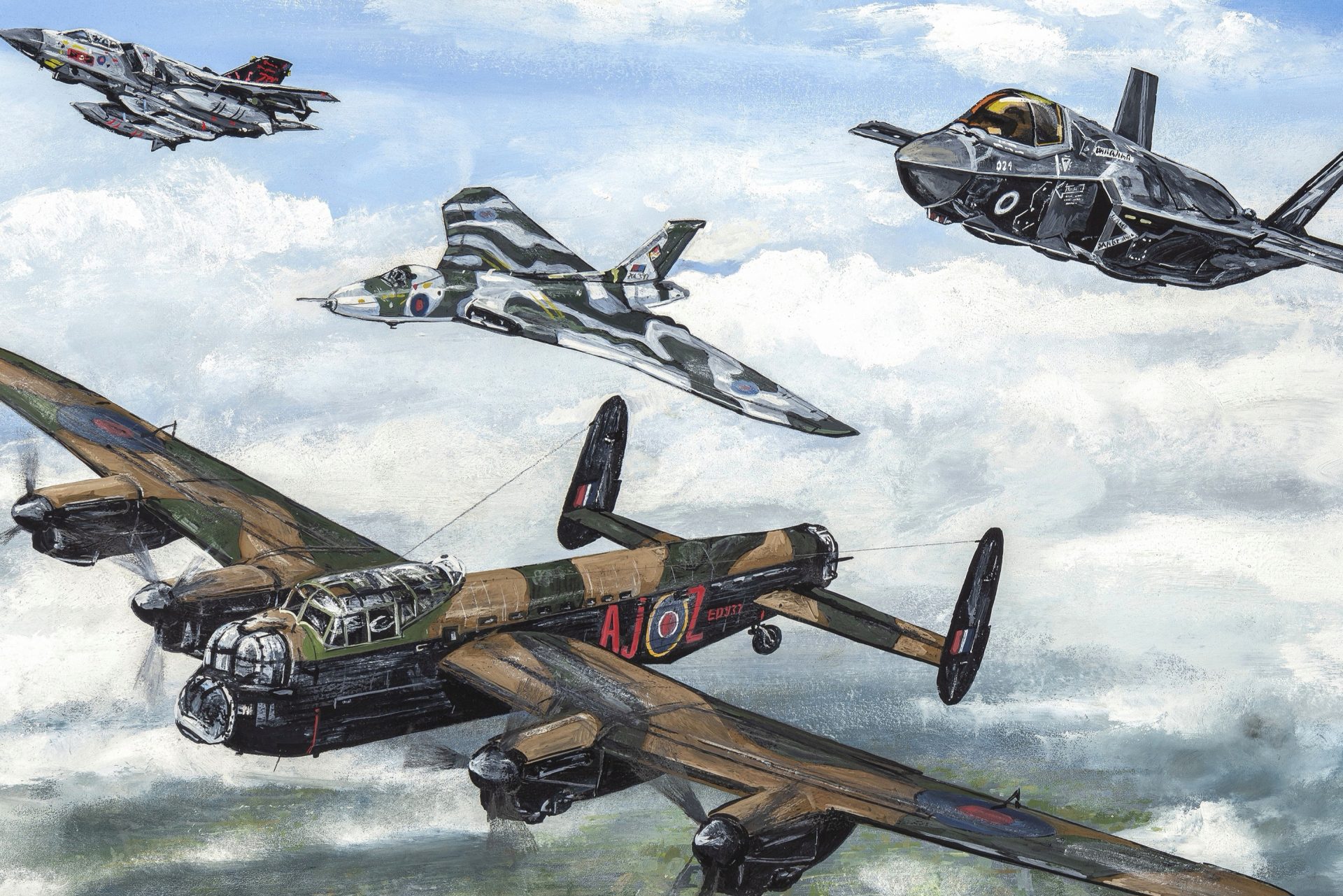 Featuring Avro Lancaster, Hawker Hurricane and Supermarine Spitfire. All three aircraft are part of the Battle of Britain Memorial Flight and depicted over Portland Bill, on the Isle of Portland, Dorset, England.