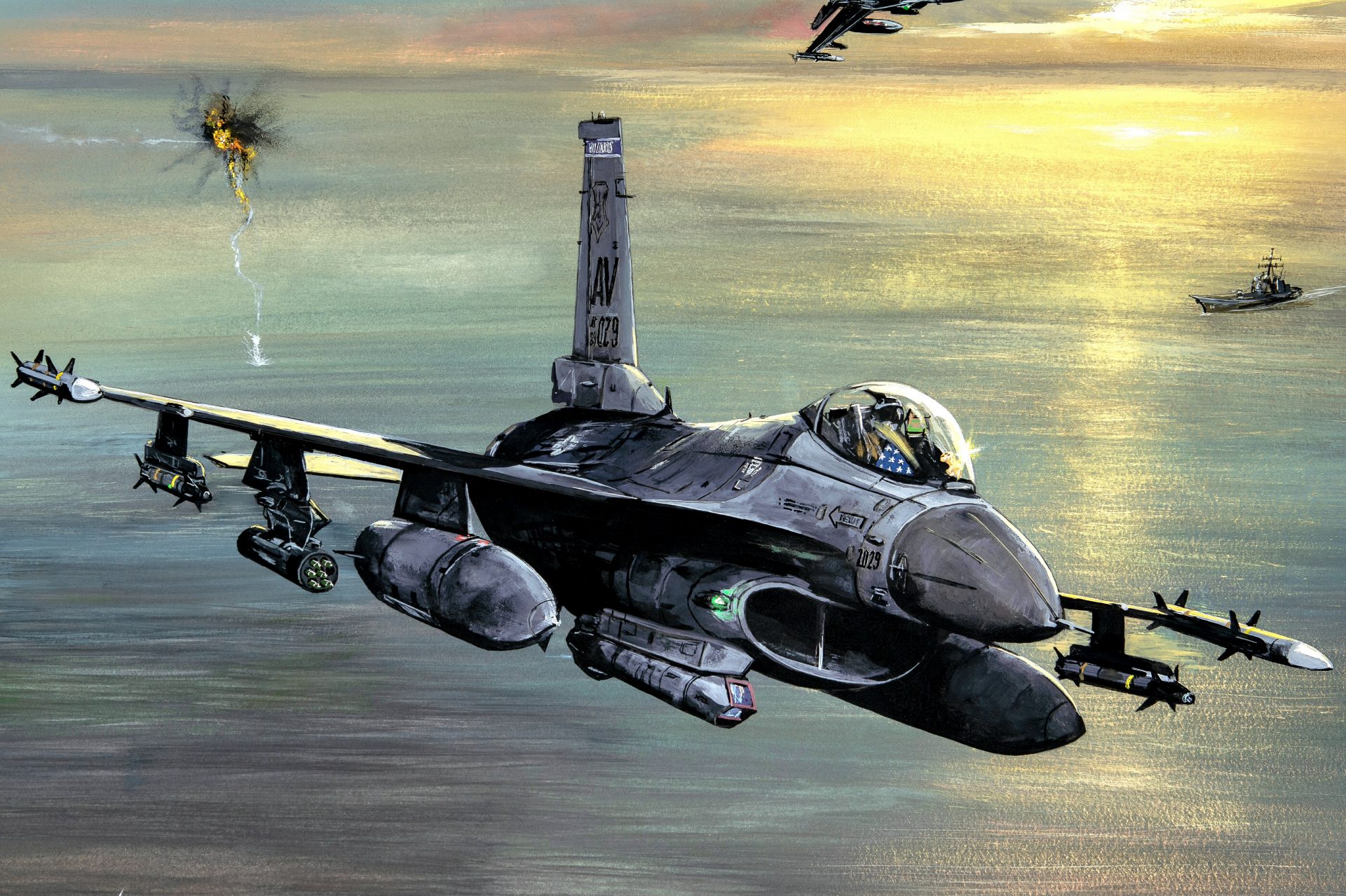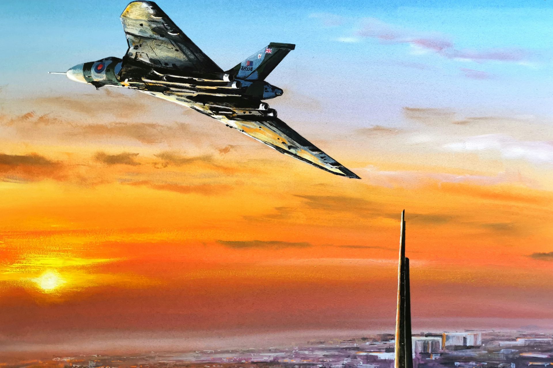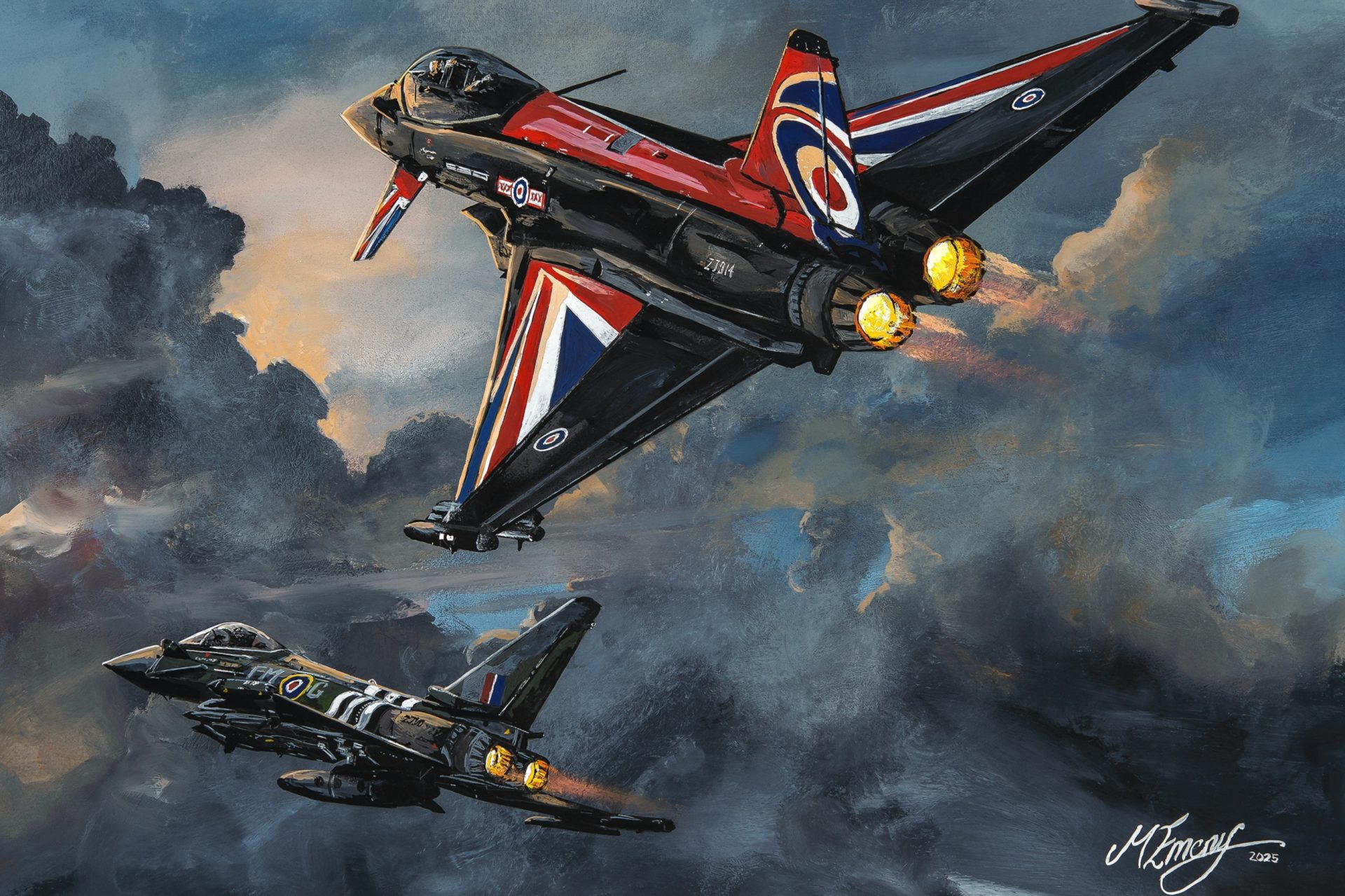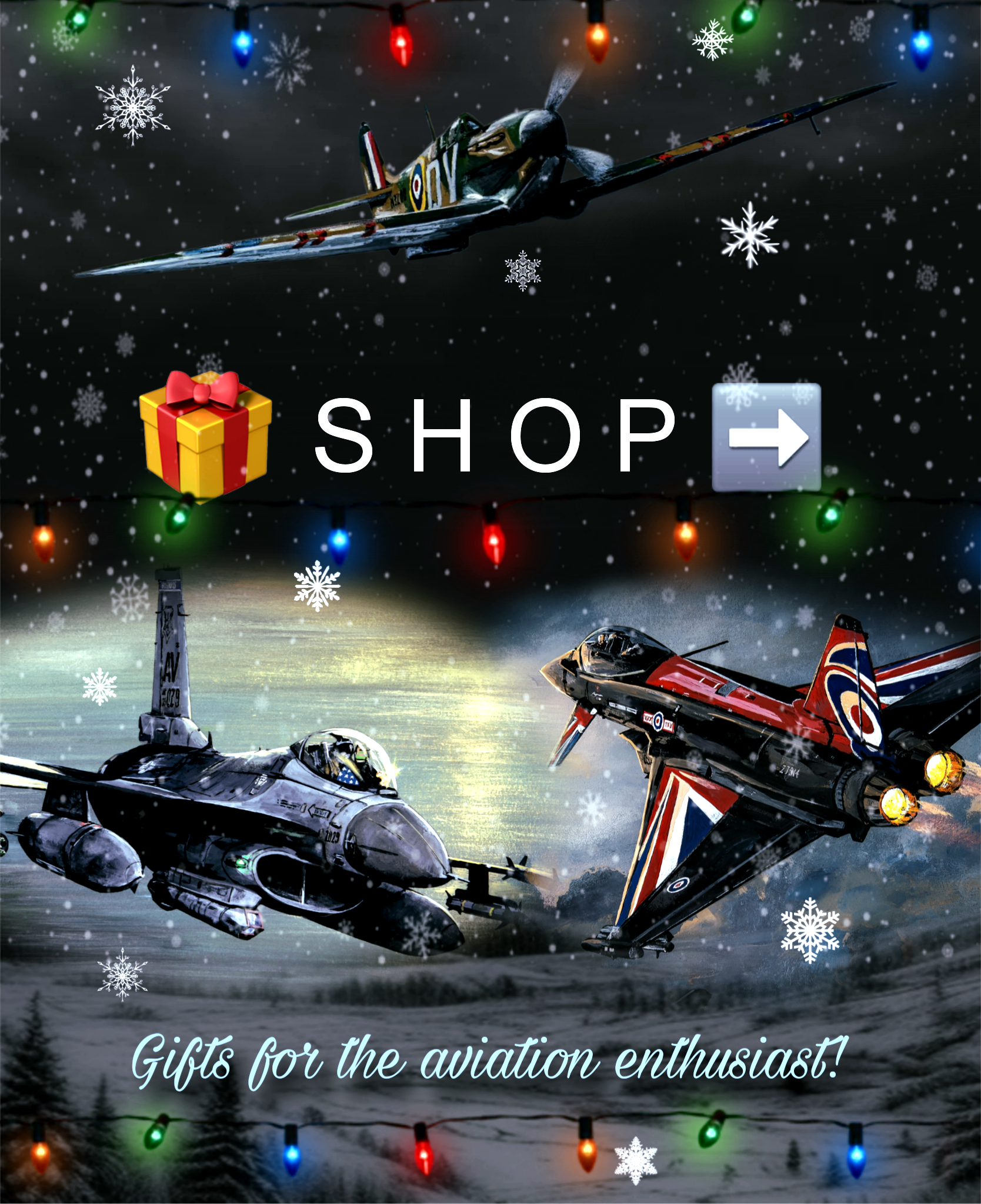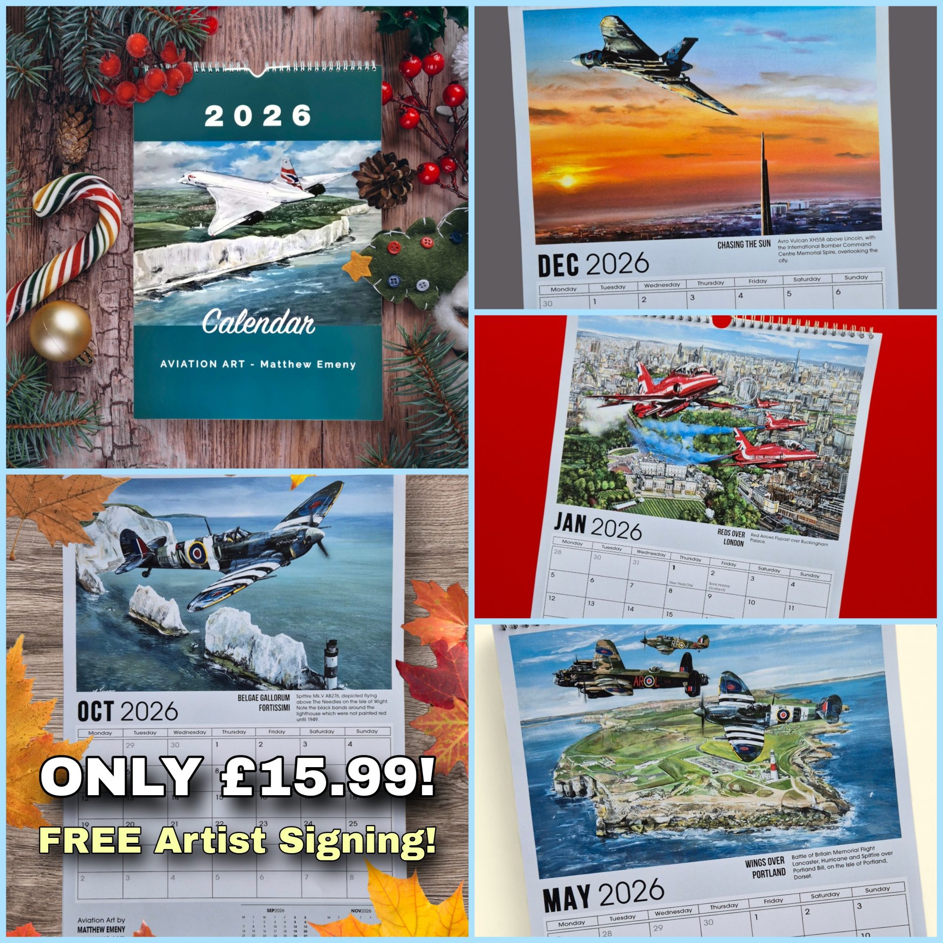 Featuring Avro Lancaster, Hawker Hurricane and Supermarine Spitfire. All three aircraft are part of the Battle of Britain Memorial Flight and depicted over Portland Bill, on the Isle of Portland, Dorset, England.